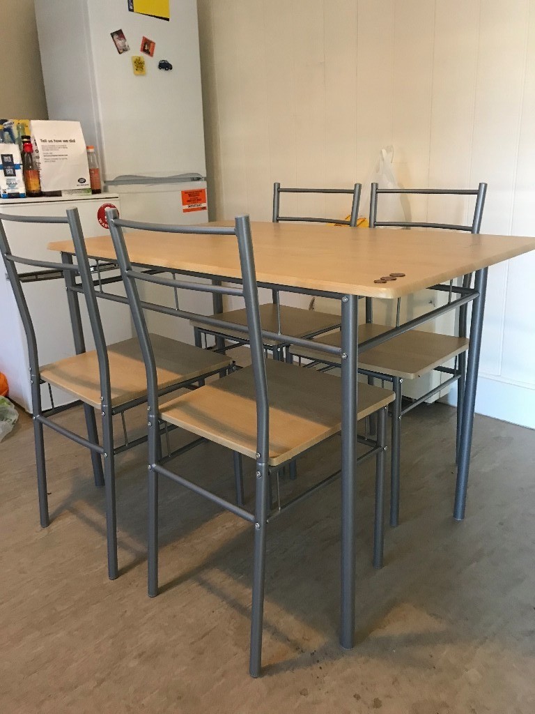 Dining Table& FOUR Chairs for low price | in Brighton ... from i.ebayimg.com Lowest price of the summer season! (1) counter height dining table. Its simple design is timeless enough to last decades in your home without feeling dated. The dining table has four straight legs and a rectangular tabletop. 5 pcs dining table set, modern bar table set with 4 chairs, home kitchen breakfast table and chairs set ideal for pub, living room, breakfast nook, easy to assemble (rustic brown) 3.4 out of 5 stars. Dawson bronze dining room set with round table. 17.5 w x 14.25 d x 23.5 h. 4.3 out of 5 stars.
