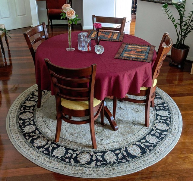 I have a 50″ round table that seats four. From there, the size of the rug can vary depending on how much or little flooring you'd like to see. Visit rugspot to see the largest collection rugs for dining room and. This area rug accents the seating area. Functionally, the rug is also too small because the chairs are not fully.