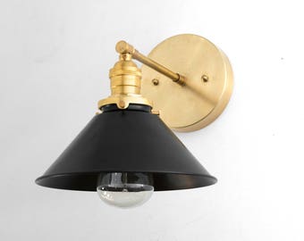 In the bathroom, display them similarly, with one light on either side of the vanity mirror. Industrial black wall sconce swing arm angle adjustable swing arm vintage wall mount light sconces wall lamp set of 2. Travers 10 1/2 high black wall sconce $ 81.00. Sold and shipped by lamps plus. The rubbed bronze fixtures are paired with rubbed bronze shades.