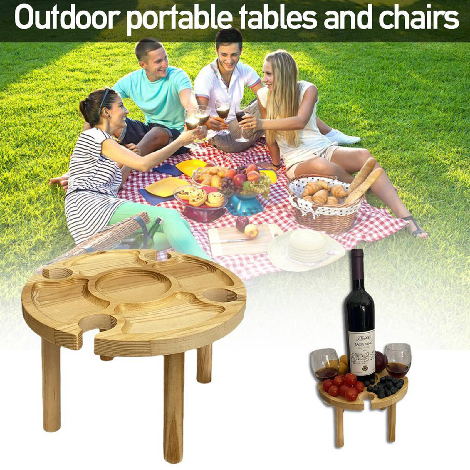 Home 💥wooden outdoor folding picnic table💥with glass holder. 5 out of 5 stars. ⭐fast returns100% money back guarantee. It is suitable for all those who like to enjoy a glass of wine with delicious cheese or fruit. 💥wooden outdoor folding picnic table💥with glass holder.